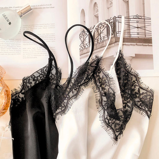 White Silk Camisole Women'S V-Neck Lace Bottoming Sexy Outer Wear Acetic Acid Satin Beauty Back Top