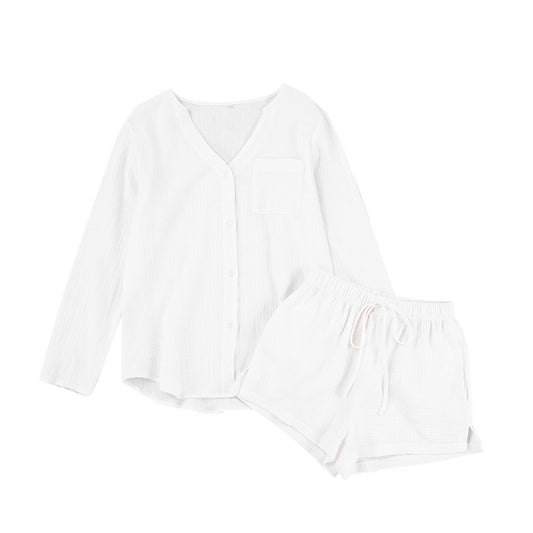 White Long-sleeved Air-conditioned Cotton Crepe Shorts