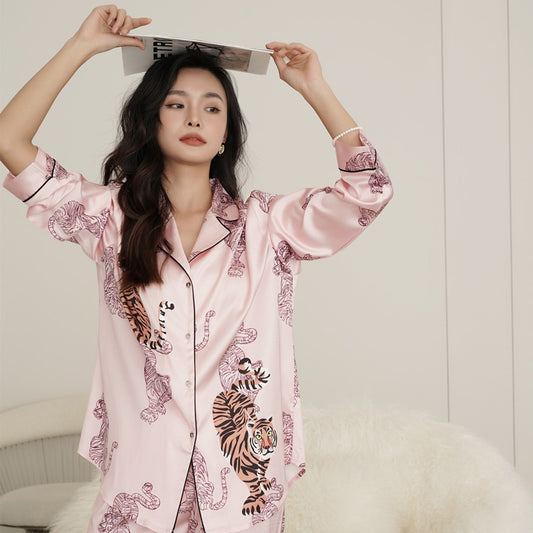 Ice Silk Pajamas Long Sleeve Simple Homewear Suit